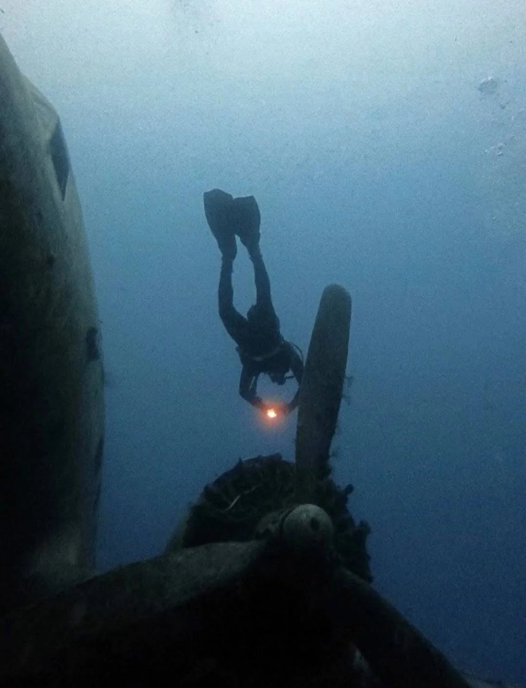 The water was murky, no doubt due to the swirling above us, and I had no idea where we were headed. Somewhat eerily, the outline of the sunken aircraft emerged, bringing with it a strange feeling of knowing something was somewhere it should not be. It is unearthly to see an aircraft on the ocean floor - an imagining of terrified people onboard; however, thankfully, this was not the fate of the old Dakota C-47. But still - it vibed ‘spooky’ and was even devoid of life but for one lone Lion Fish that drifted about in the belly of the aircraft. The second dive took us by sunken amphorae and black tube worms that flayed about in the swell as if trying to anchor themselves against a mutible force.