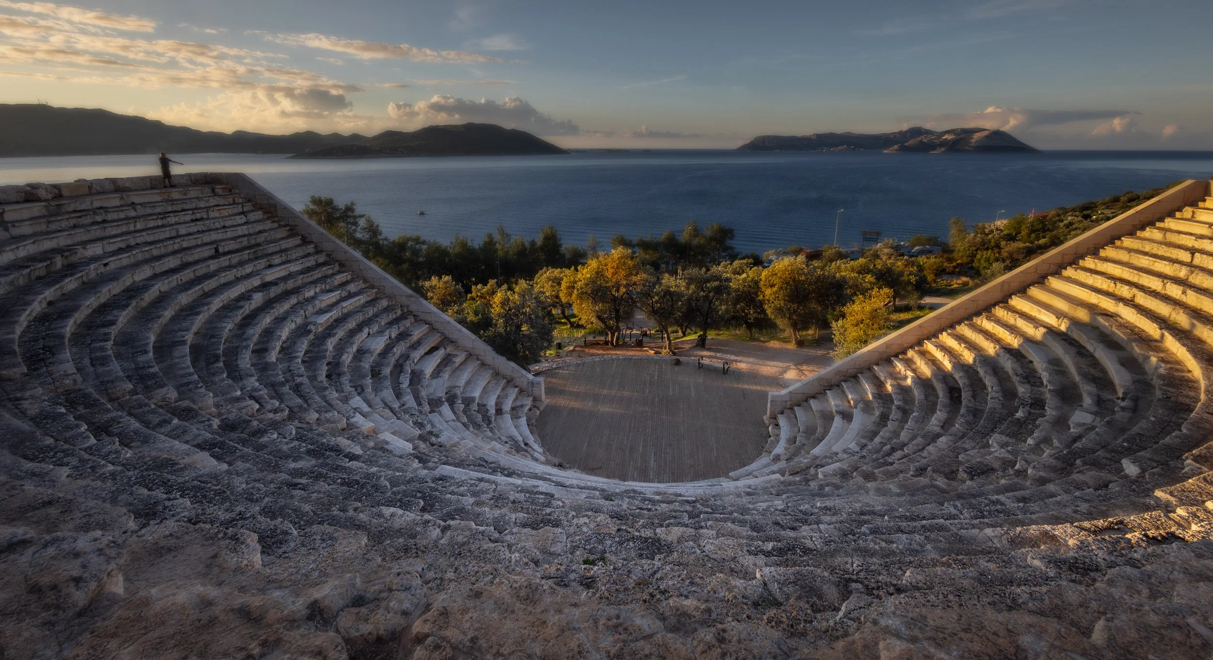 The stunning Lycian amphitheatre of Kaş faces the ocean, with commanding views of the Greek island - Kastellorizo.