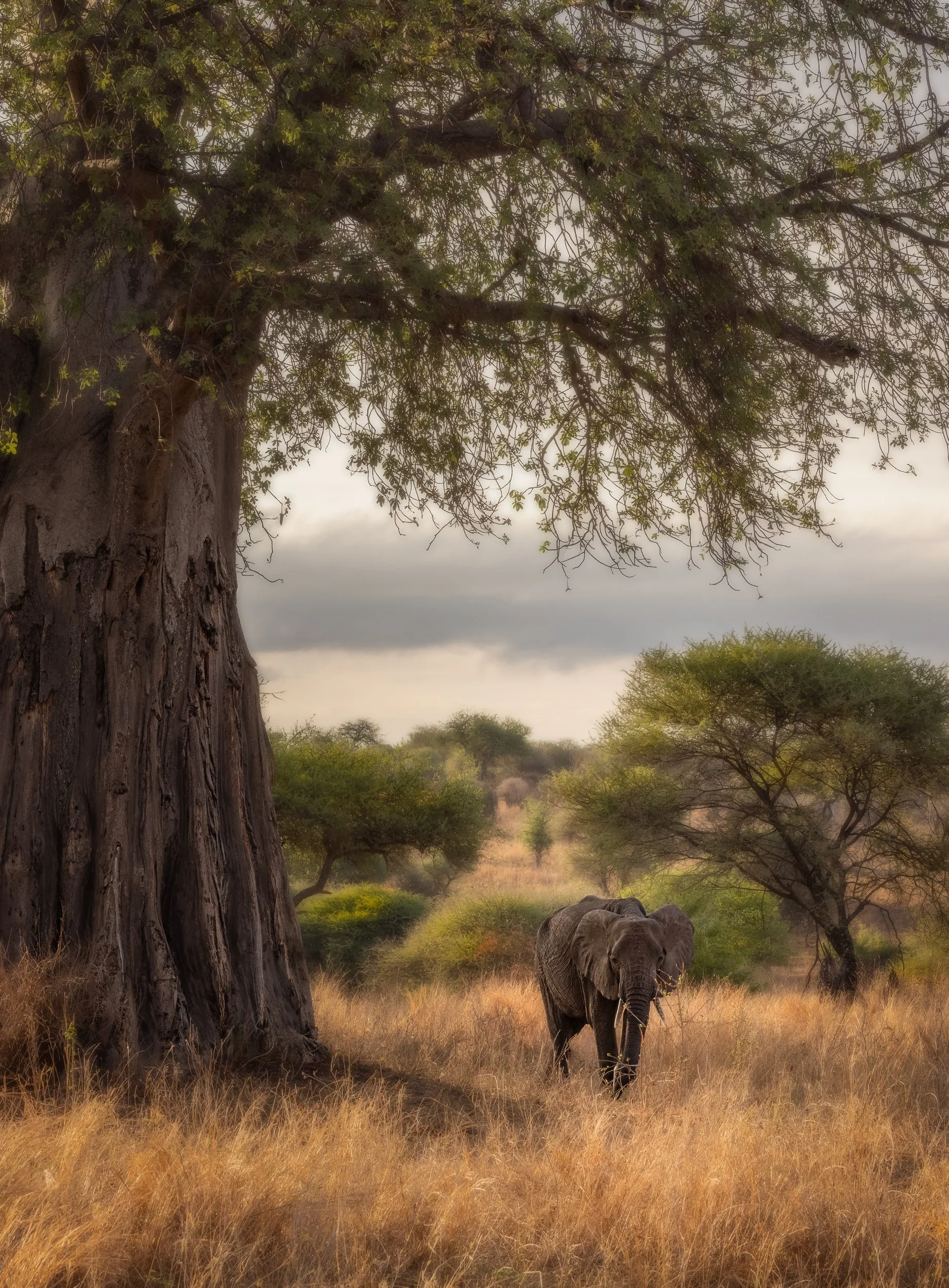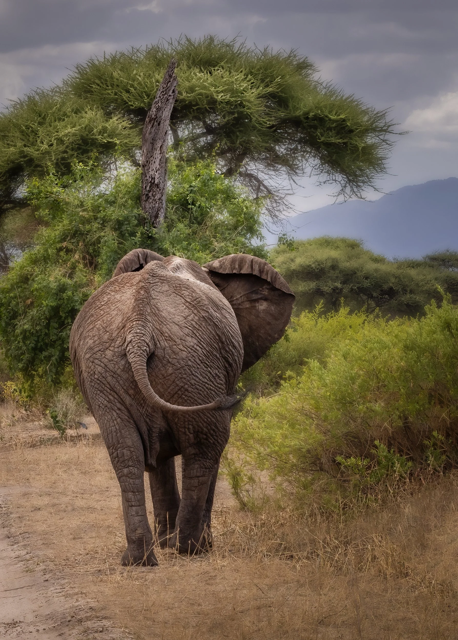 Tarangire is home to a very large number of elephants, and I watched these graceful, curious animals as they wandered in lolling groups across the trails, swaying their trunks and kicking up dust while protecting their young deep within the group. Occassionally a brazen male would turn his head towards us and flare his ears with a heavy nod of his head as if to say - “that’s enough for today - go on now”.